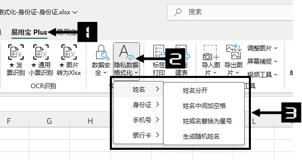 单击【易用宝plus】→【隐私数据格式化】→【姓名】,单击对应的菜单进入操作。