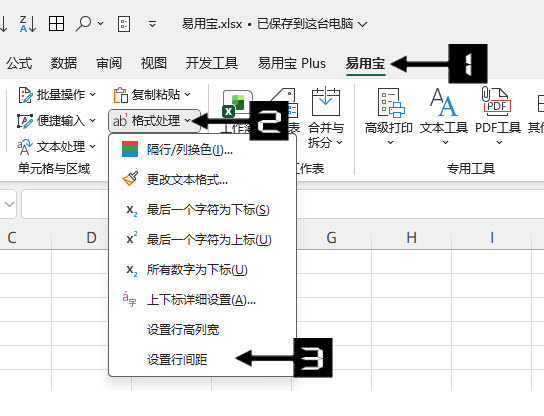 单击【易用宝】→【格式处理】→【设置行间距】。