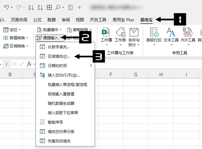 单击【易用宝】→【便捷输入】→【区域填充】。