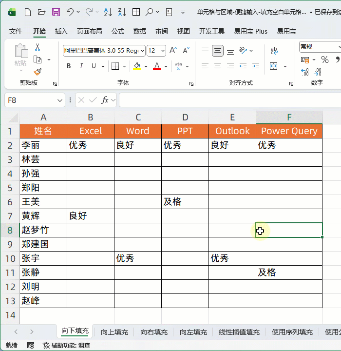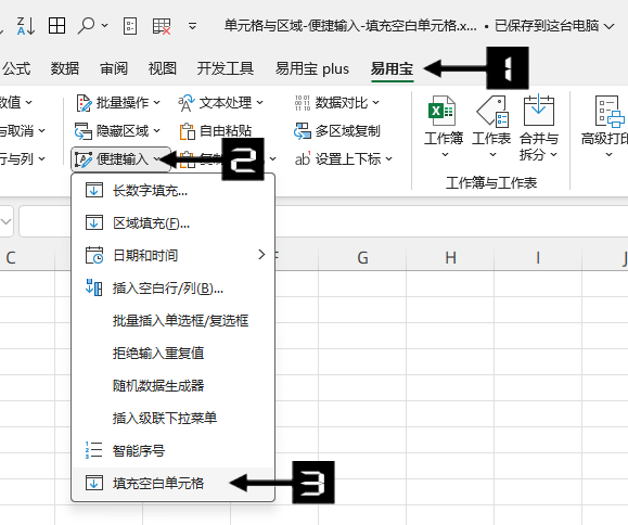 单击【易用宝】→【便捷输入】→【填充空白单元格】。