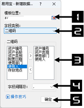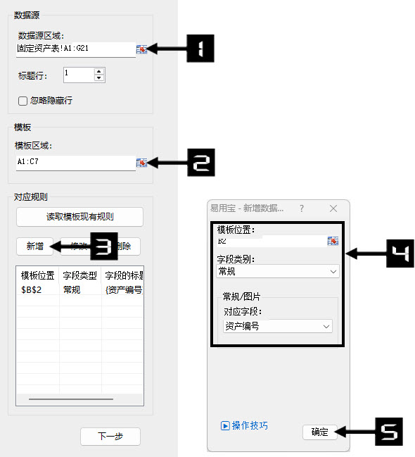 ④ 选择模板位置,字段类型,对应字段。